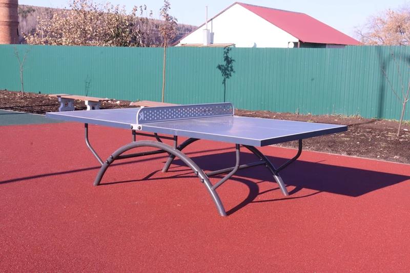 На территории спортивного комплекса установлены спортивные снаряды и тренажеры, теннисный стол, трибуны, лавочки, урны.