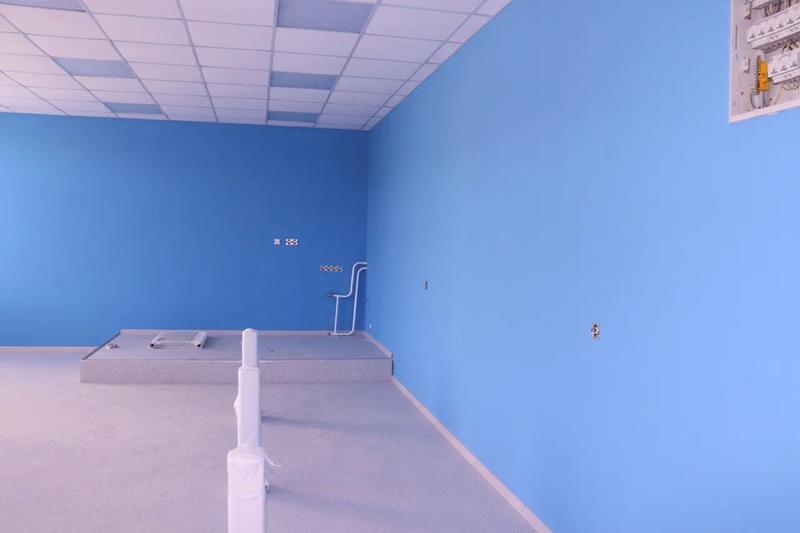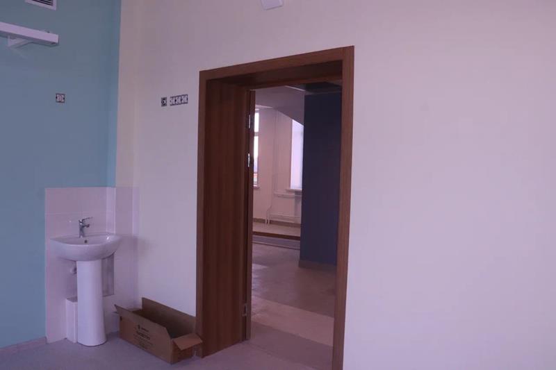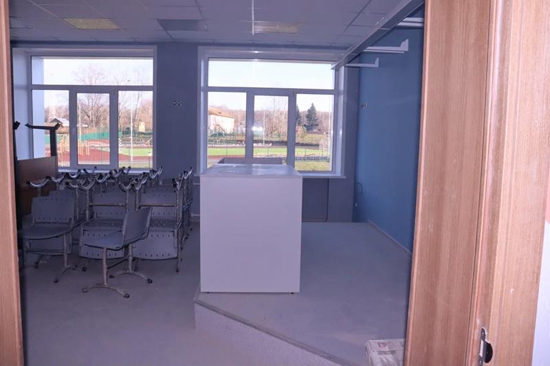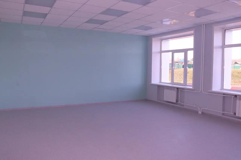 В спортивном зале окрашены стены, установлена система вентиляции и приборы отопления.