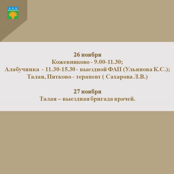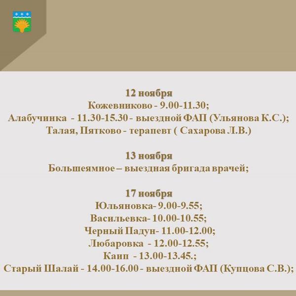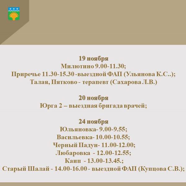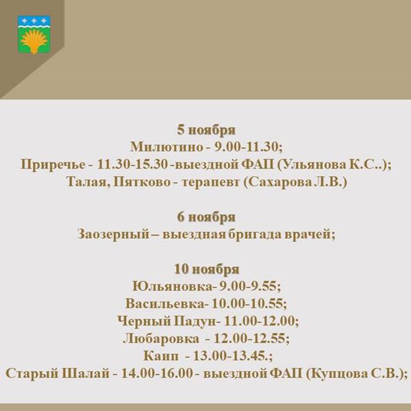 График выездов специалистов поликлиники ГБУЗ «ЮГБ» на ноябрь 2025 года