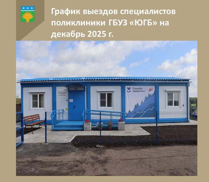 График выездов специалистов поликлиники ГБУЗ «Юргинская городская больница» на декабрь 2025 года