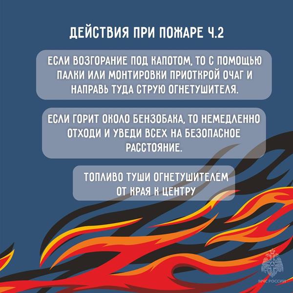 • Пока не прибыло подразделение пожарной охраны, чтобы огонь не перекинулся на стоящие рядом автомобили, поливайте их водой. А если есть такая возможность, их следует откатить на безопасное расстояние.