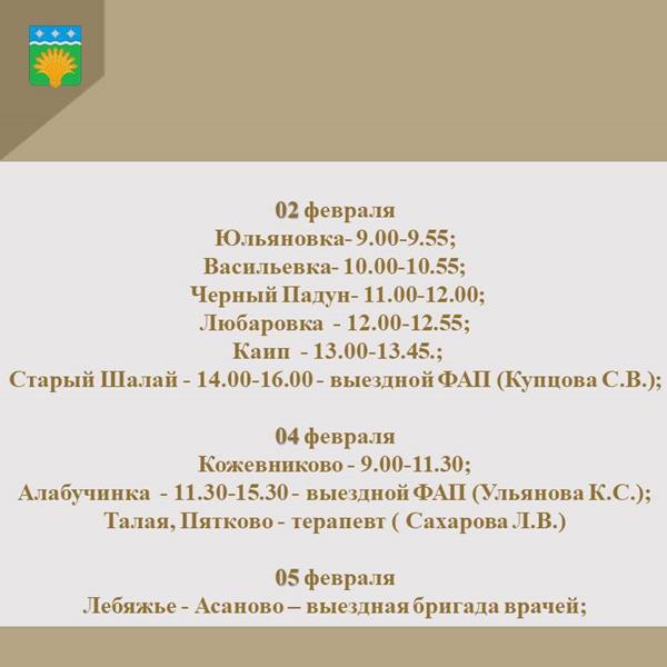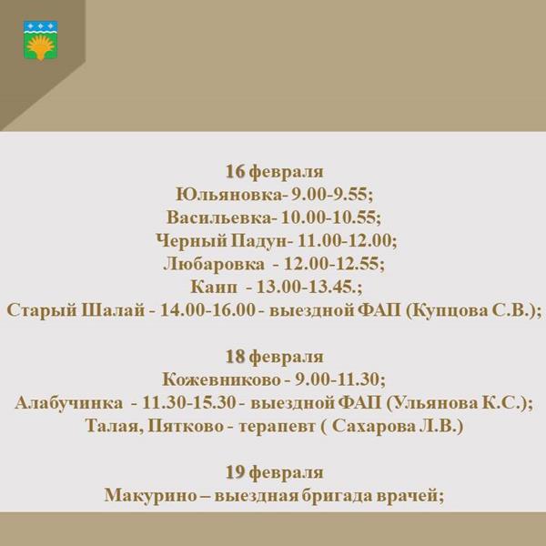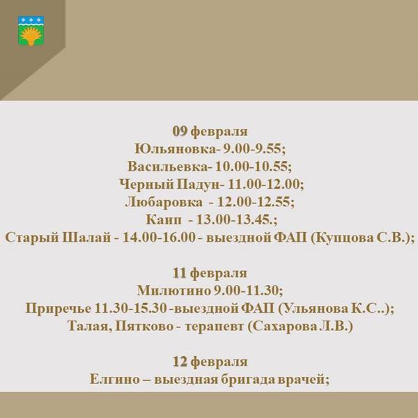 График выездов специалистов поликлиники ГБУЗ «ЮГБ» на февраль 2026 года