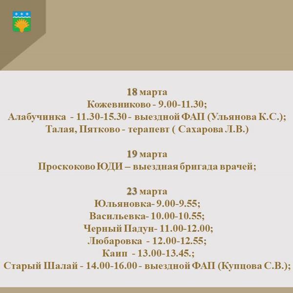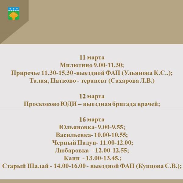 График выездов специалистов поликлиники ГБУЗ «ЮГБ» на март 2026 года